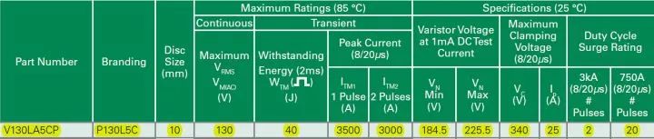 MOV rated operating voltage, ac occasions consider AC rated voltage, that is, Vrms or Vm(ac), the device in the figure above can work normally at 130V RMS AC, more than this voltage, MOV may act or damage, resulting in the circuit can not work.