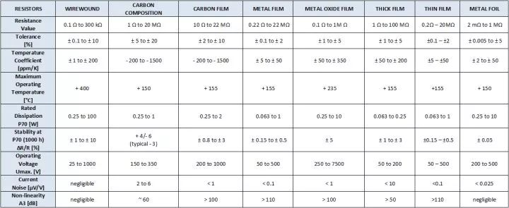For the main parameters of common types of resistors, as shown in the following figure, the largest shipments should be thick film resistors and metal film resistors.